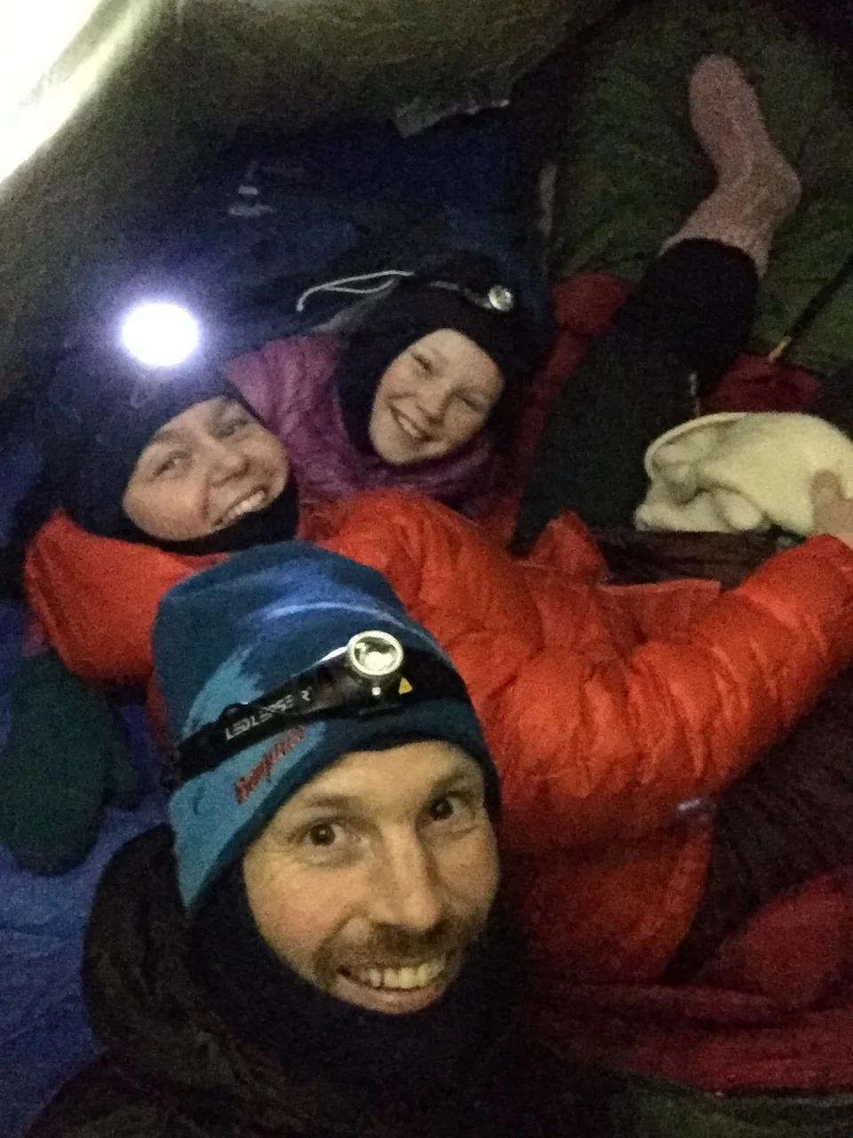 Rett bak hytta har vi laget oss en iglooplass. Der har vi vært nesten hver dag for og trampe så snøen blir mer kompakt og byggevennlig. Vi har fått tid til veldig mye annet enn det vi får tid til hjemme. Alle har lest bøker, og vi har spilt spill nesten hver kveld, vi har akt og lekt mye i snøen.